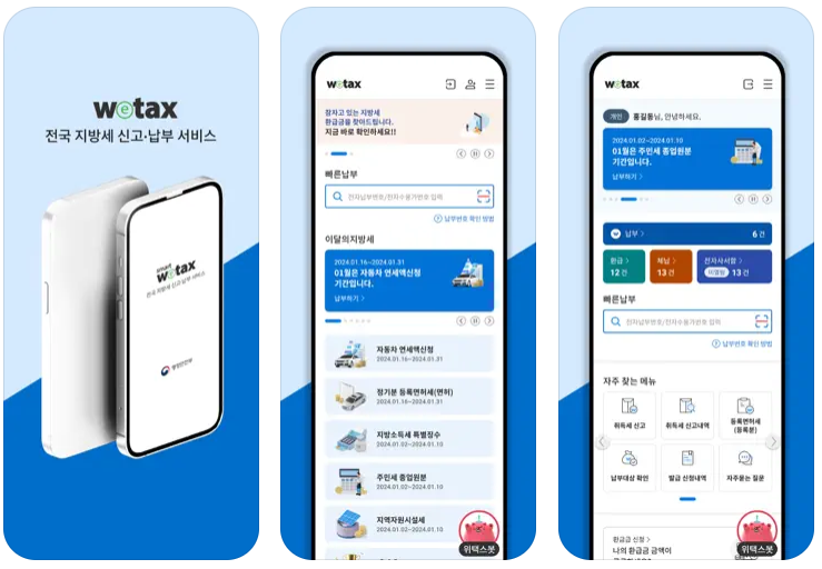 - 스마트 위택스(Google Play / Apple App Store)를 통해 핸드폰으로 신청